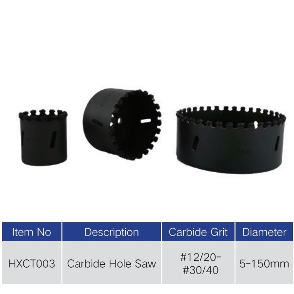 اره های حفره ای کربید معمولاً از یک بدن اره حفره ای تشکیل شده اند که یک ساختار لوله ای دایره ای با یک انتهای پایین باز است.سطح بالایی از بدن سوراخ اره فراهم شده با یک سوراخ اصلی برای اتصال، و چندین سوراخ کمکی در اطراف سوراخ اصلی فراهم شده است. دیواره جانبی بدن نردبان سوراخ با چندین سوراخ مستطیل مساوی فراهم شده است که چهار گوشه آن گرد هستند،و دو طرف هر سوراخ مستطیل از بالا به پایین به داخل سوراخ دیده بدن گسترش. طرف پایین بدن سوراخ چیده شده یک تیغه چیده شده است و دندان های بر روی تیغه چیده شده به طور متناوب به هر دو طرف تقسیم می شوند و دندان های مجاور به طور متناوب به طور متناوب خرد می شوند.نوک تیغه اره با یک لایه ذرات کاربید ولفستم به صورت حرارتی اسپری می شود.